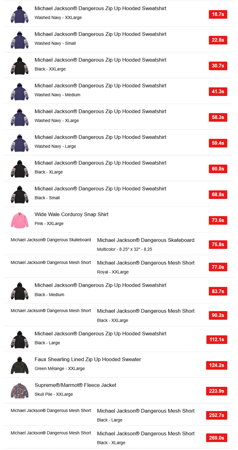 Supreme 2025FW Week18 USの完売タイム