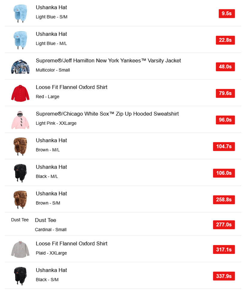 Supreme(シュプリーム) 2025FW Week17に発売された新作アイテムの公式オンラインストア(US、EU、UK、日本)の完売タイムをまとめています。